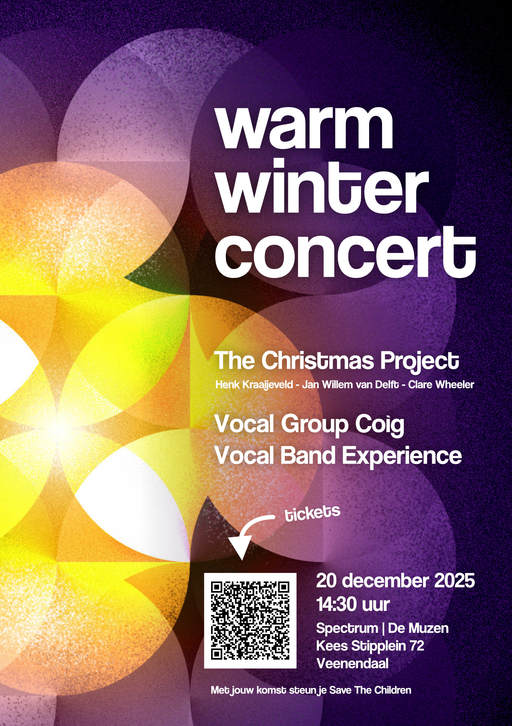 20 december - Warm Winterconcert ism Vocal Group Coìg en Vocal Band Experience. 14:30 u, Theater het Spectrum Veenendaal. Bestel hier je tickets
