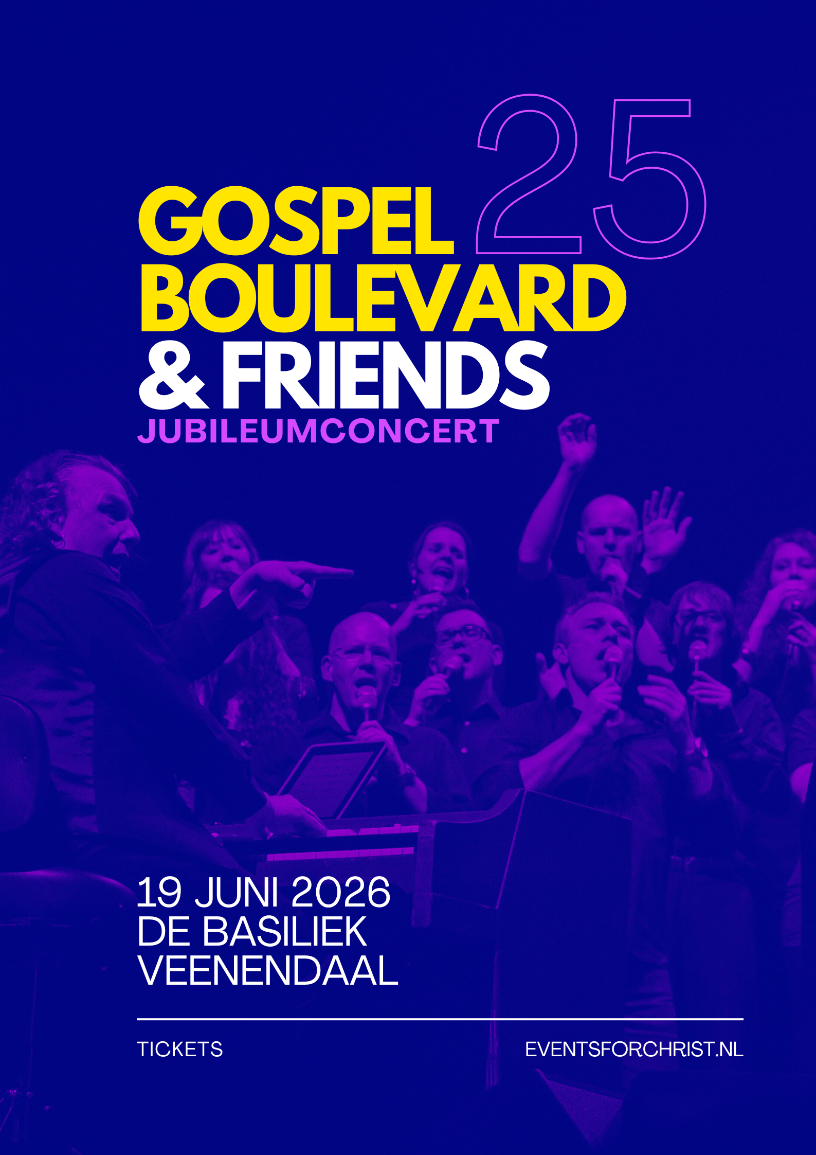 Op 19 juni 2026 viert Gospel Boulevard haar 25 jarig jubileum met een knallend concert! Check hier alle info!